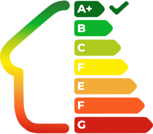 Standardni zid od SIP panela u našoj izvedbi postiže U ≈ 0,21 W/m²K, što zadovoljava kriterije niskoenergetske kuće i omogućuje postizanje visokog energetskog razreda (A+), ovisno o ostatku ovojnice i ugrađenim sustavima.